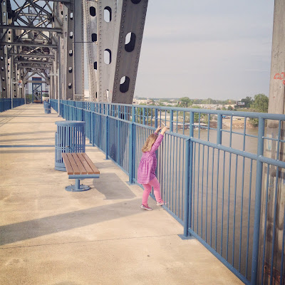 When we rolled into town, Nana and Poppa had to be out of their house for a home inspection. So, what better place to hang out that the Riverfront district?!?! There is the best park and Cilla had the best time! There is a tunnel slide that goes down a hill and Cilla must have slid down and climbed the hill 35 times! I was tired watching her!